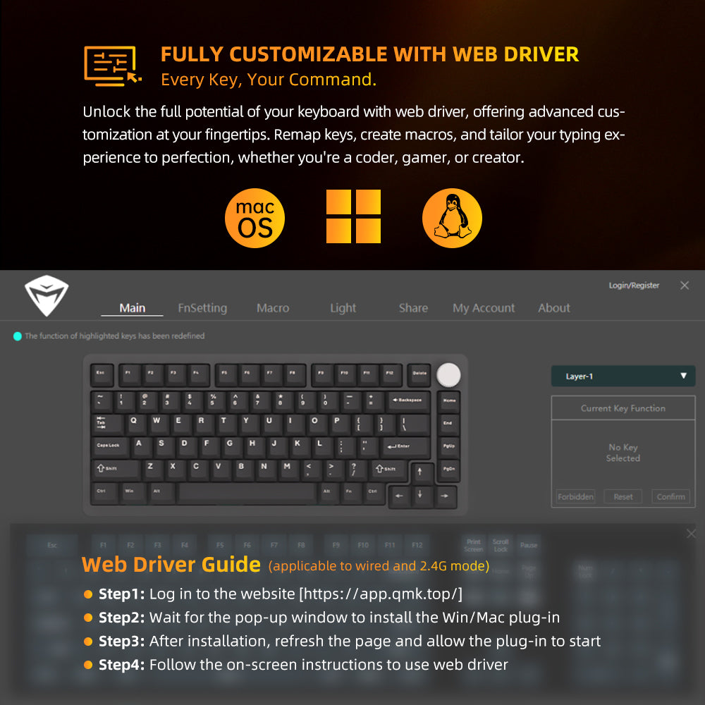 Hỗ trợ 3 chế độ kết nối (Tri-mode): có dây USB-C, Bluetooth 5.0 và 2.4GHz Wireless, bàn phím mang lại sự linh hoạt tối đa, dễ dàng chuyển đổi giữa nhiều thiết bị. Trang bị switch cơ chất lượng cao cho cảm giác gõ mượt, độ bền vượt trội và khả năng thay nóng (hot-swap) tiện lợi.