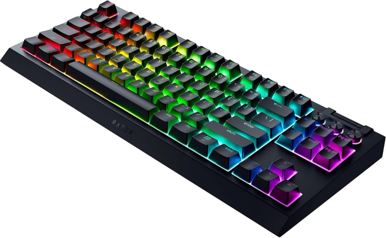 Razer BlackWidow V4 Tenkeyless sở hữu layout TKL (84 phím), loại bỏ cụm phím số giúp tối ưu không gian bàn làm việc, tăng diện tích rê chuột cực kỳ lý tưởng cho game FPS và setup gọn gàng.