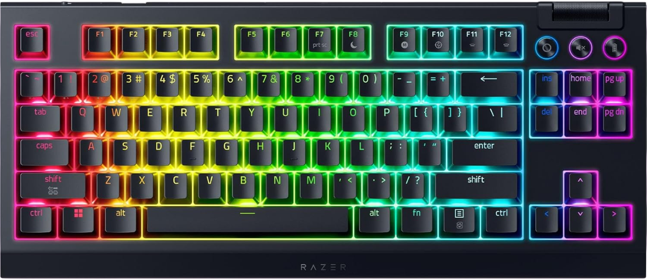 Bàn phím cơ không dây Razer BlackWidow V4 Tenkeyless HyperSpeed RGB Hotswap là lựa chọn hoàn hảo cho game thủ và người dùng chuyên nghiệp đang tìm kiếm một chiếc bàn phím TKL gọn gàng, không dây ổn định, cảm giác gõ cao cấp. Sở hữu thiết kế chắc chắn, switch cơ học Gen-3 mới nhất cùng thời lượng pin cực khủng lên đến 980 giờ, đây là chiếc bàn phím sẵn sàng đồng hành lâu dài cho mọi nhu cầu chơi game và làm việc cường độ cao.