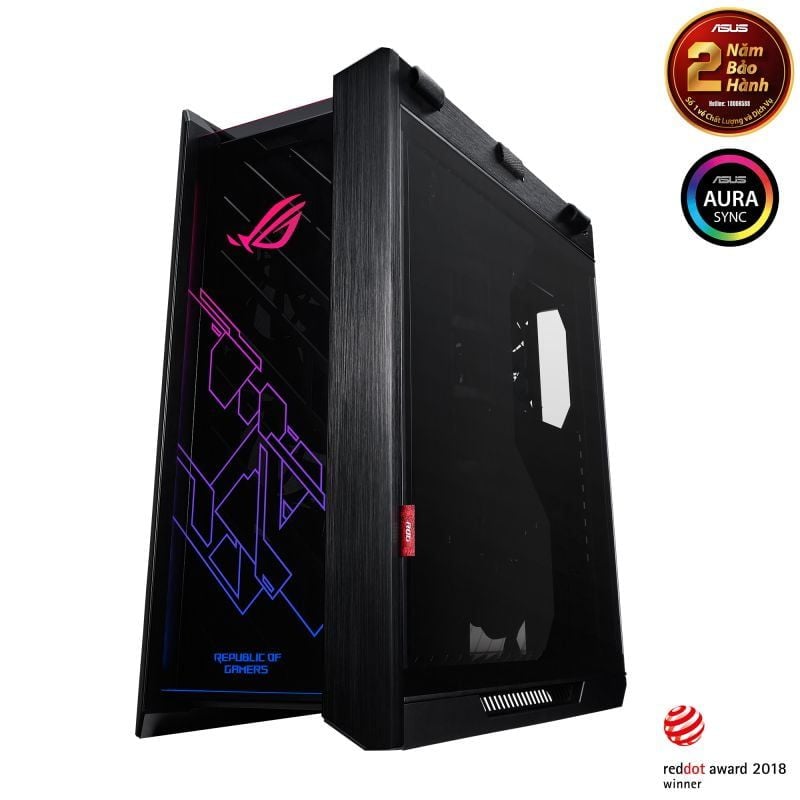 Case Asus ROG Strix Helios RGB - ATX Với các đèn LED ARGB tích hợp phía trước, có thể điều khiển thông qua nút trên case hoặc phần mềm Aura Sync.