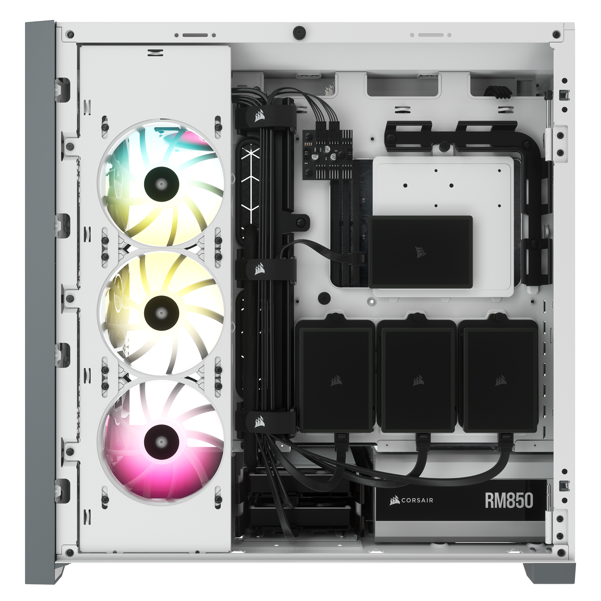 Hỗ trợ lên tới 10 quạt 120mm hoặc 4 quạt 140mm, hỗ trợ radiator 360 ở mặt bên với cấu hình quạt hút thổi. Đi kèm 3 quạt Corsair AF120 RGB ELITE PWM mạnh mẽ và LED cực đẹp.
