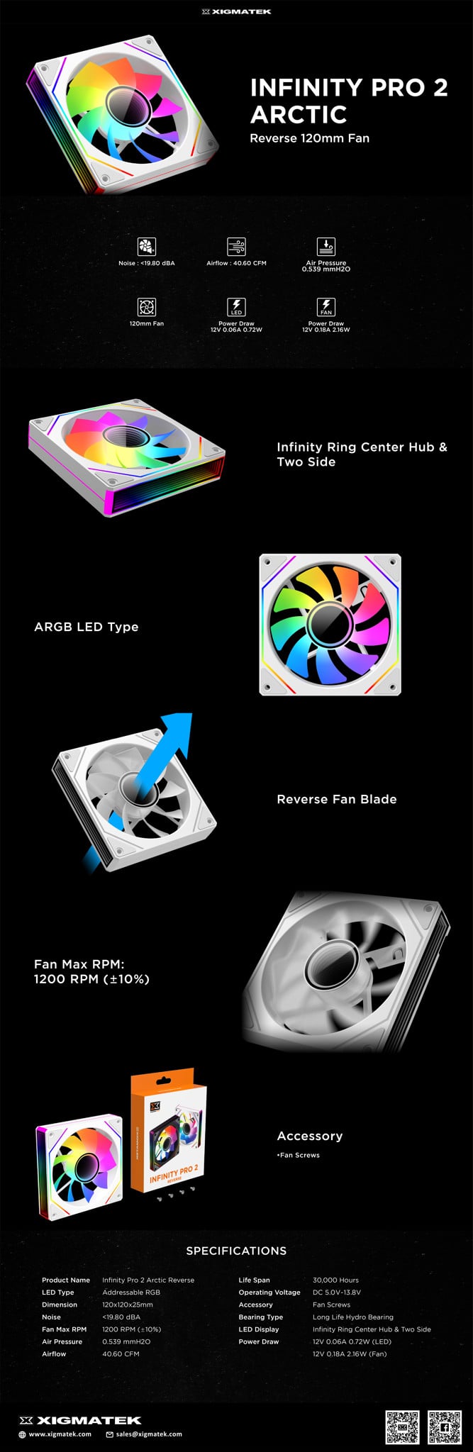 FFan Case Xigmatek Infinity Pro 2 Arctic Reverse - ARGB (cánh ngược)