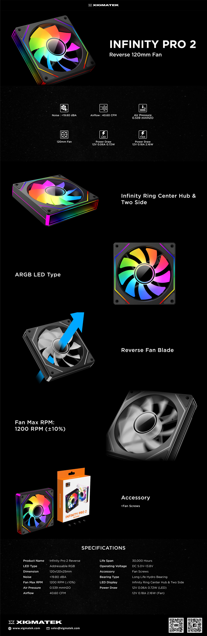 Fan Case Xigmatek Infinity Pro 2 Reverse - ARGB (cánh ngược)