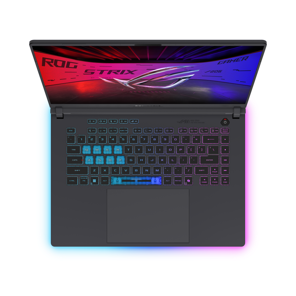 ASUS ROG Strix G16 G615JMR-S5155W được trang bị bàn phím chiclet với đèn nền RGB từng phím, tùy chỉnh màu linh hoạt theo sở thích. Hiệu ứng ánh sáng rực rỡ có thể đồng bộ với hệ sinh thái Aura Sync, tạo nên không gian gaming đầy cảm hứng. Đây là điểm cộng lớn cho game thủ yêu thích sự cá nhân hóa và trải nghiệm thị giác khi chơi game ban đêm.