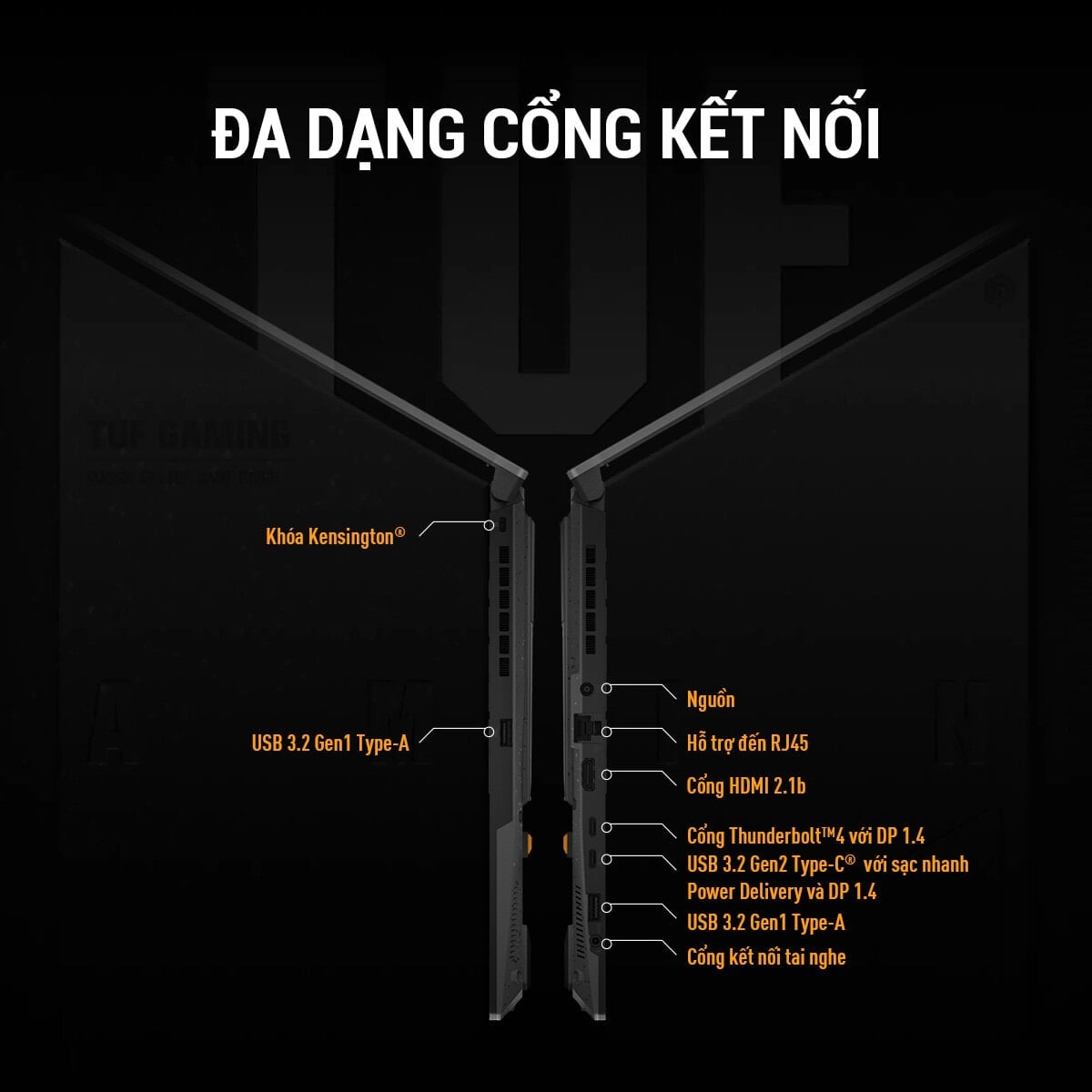 Cho dù thiết lập của bạn như thế nào, Laptop Gaming Asus TUF A15 FA507NU-LP045W sẽ luôn duy trì kết nối cho bạn. Cổng HDMI 2.1 dành riêng được bổ sung thêm cổng USB Type-C kép cùng hỗ trợ DisplayPort cũng như sức mạnh và sự linh hoạt của Thunderbolt™ 4. Wi-Fi 6 (802.11ax) nhanh và ổn định đảm bảo rằng bạn sẽ có thể truy cập trực tuyến và làm việc hiệu suất ở bất cứ đâu có kết nối mạng tương thích, hoặc bạn có thể kết nối dây trực tiếp bằng Ethernet gigabit trang bị sẵn.