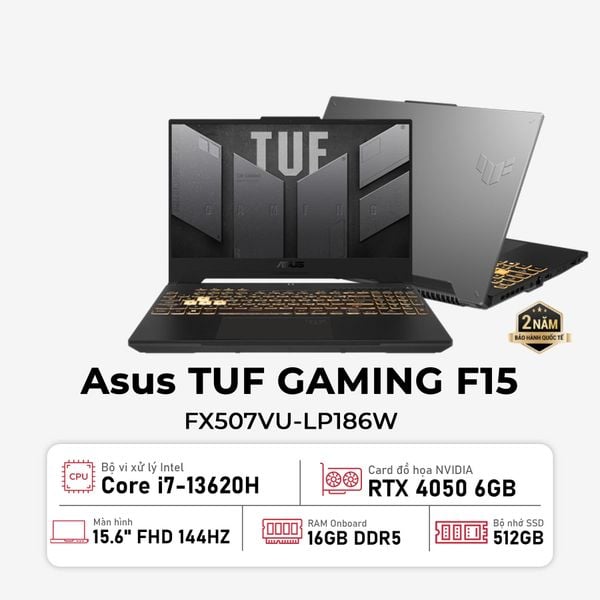 Laptop Gaming Asus TUF F15 FX507VU-LP186W là chiếc laptop hoàn hảo cho game thủ và người dùng chuyên nghiệp cần hiệu năng cao. Máy trang bị CPU Intel Core i7-13620H thế hệ 13, GPU NVIDIA GeForce RTX 4050 6GB cùng RAM 16GB DDR5 tốc độ cao. Sản phẩm phù hợp với game thủ có nhu cầu chơi game nặng, người làm đồ họa chuyên nghiệp và sinh viên cần laptop đa nhiệm mạnh mẽ.