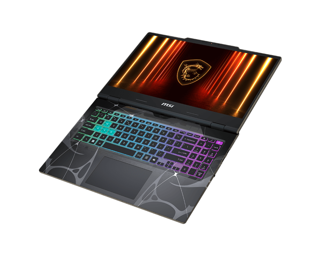 Bàn phím MSI Cyborg 15 được trang bị đèn RGB, tạo điểm nhấn nổi bật và tăng khả năng làm việc trong điều kiện thiếu sáng. Phím có độ phản hồi nhanh, hành trình phím tiêu chuẩn giúp gõ phím chính xác, phù hợp chơi game lâu.