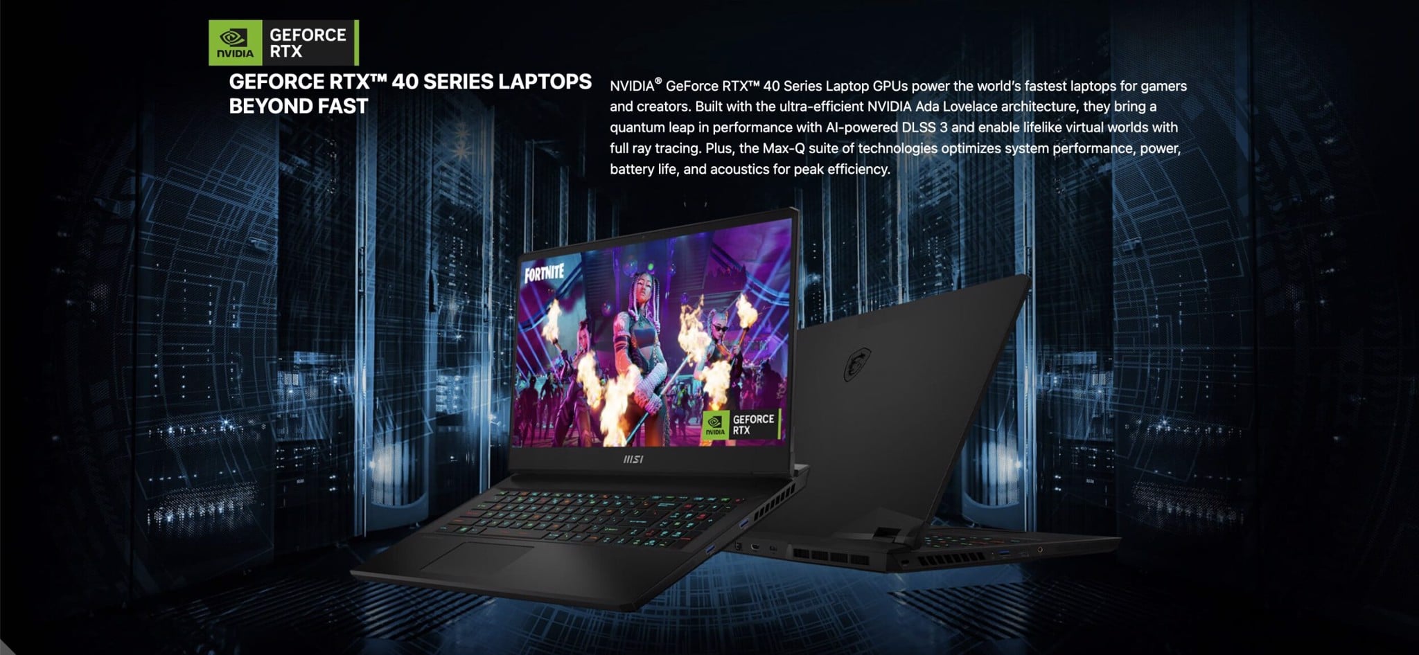 Laptop Gaming MSI Vector GP78 HX 13VI-476VN trang bị GPU NVIDIA® GeForce RTX™ 40 Series có tốc độ vượt trội dành cho các game thủ và người sáng tạo. Chúng được hỗ trợ bởi kiến trúc NVIDIA Ada Lovelace cực kỳ hiệu quả, mang lại bước nhảy vọt về cả hiệu suất và đồ họa do AI hỗ trợ. Trải nghiệm thế giới ảo sống động như thật với tính năng dò tia và chơi game FPS cực cao với độ trễ thấp nhất. Ngoài ra, bộ công nghệ Max-Q tối ưu hóa hiệu suất hệ thống, năng lượng, tuổi thọ pin và âm thanh để đạt hiệu quả cao nhất.