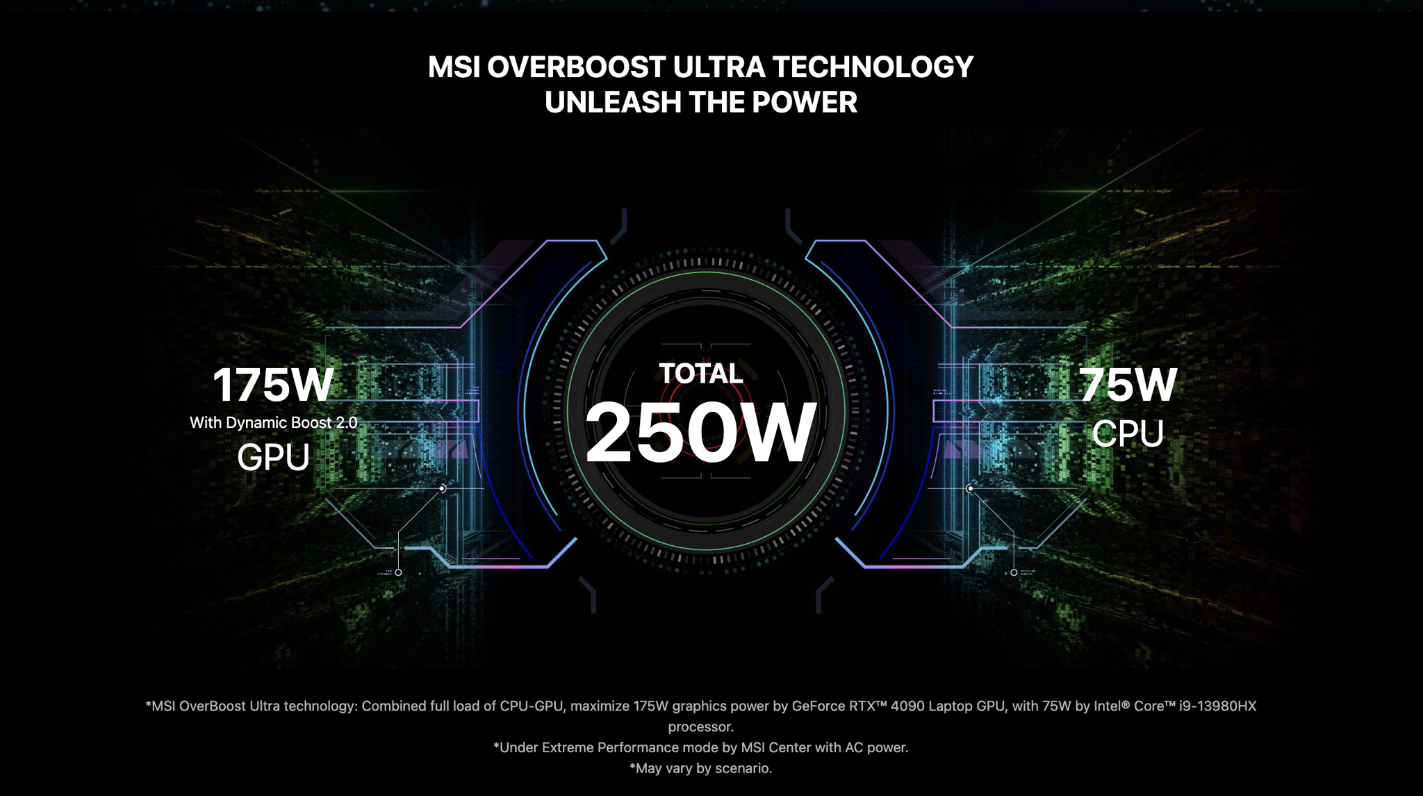 Trải nghiệm toàn bộ công suất 185W* trên Laptop Gaming MSI Vector GP78 HX 13VI-476VN. Với Laptop Gaming MSI Vector GP78 HX 13VI-476VN, khả năng của CPU và GPU sẽ vượt qua các giới hạn mà không làm giảm tần suất hoặc sự ổn định.
