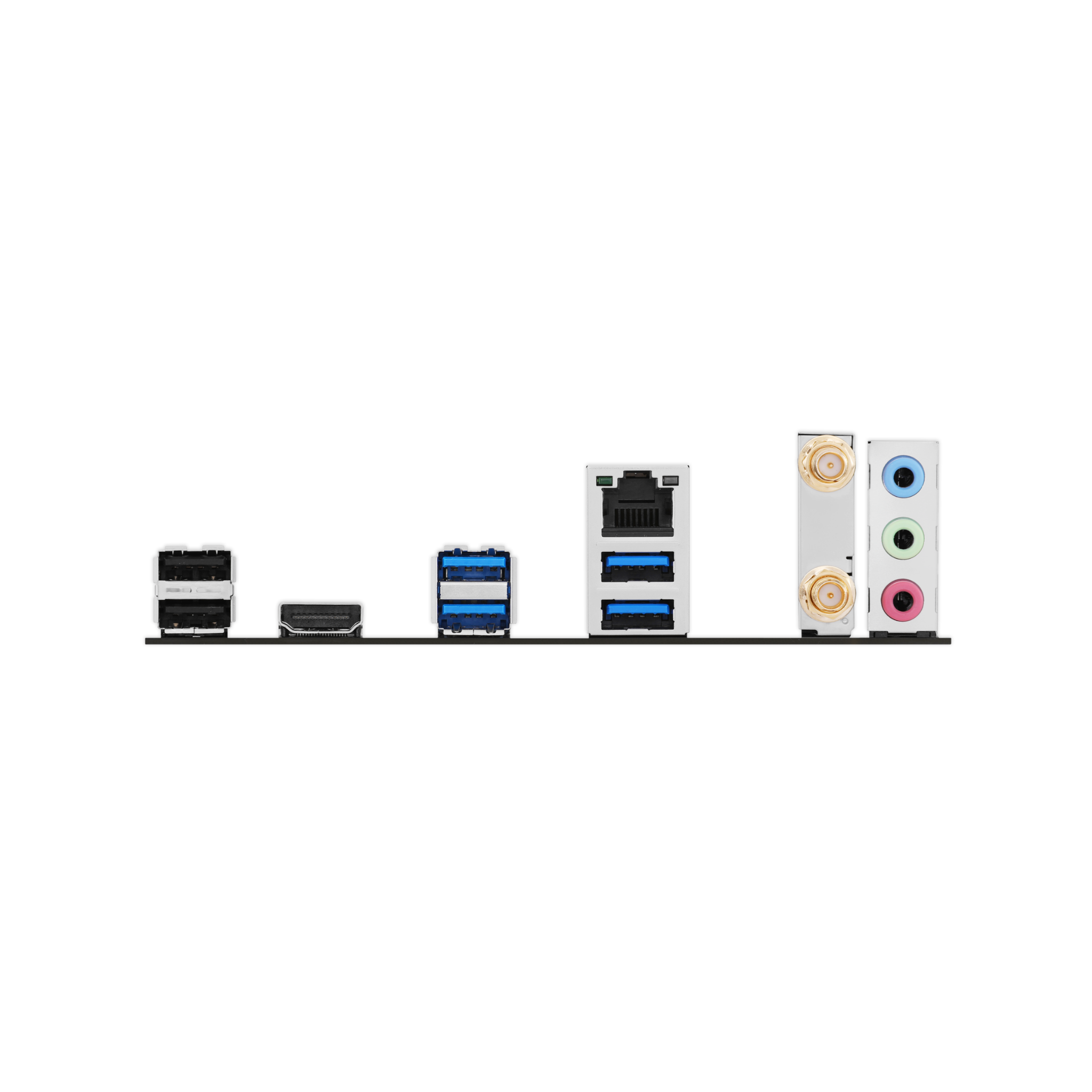 | Cổng I/O ở mặt sau | 4 x cổng USB 3.2 Gen 1 (5G) (4 x Loại A) 2 x cổng USB 2.0 (2 x Loại A) 1 x cổng HDMI TM 1 x Mô-đun Wi-Fi 1 x Cổng Ethernet Realtek 2.5Gb 3 x Âm thanh giắc cắm |