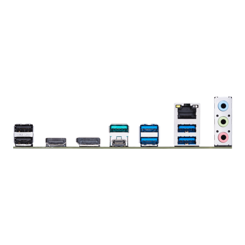 Back Panel I/O Ports | 1 x USB 3.2 Gen 2x2 port (1 x USB Type-C®) 1 x USB 3.2 Gen 2 port (1 x Type-A) 4 x USB 3.2 Gen 1 ports (4 x Type-A) 2 x USB 2.0 ports (2 x Type-A) 1 x DisplayPort 1 x HDMITM port 1 x Intel® 1Gb Ethernet port 3 x Audio jacks |