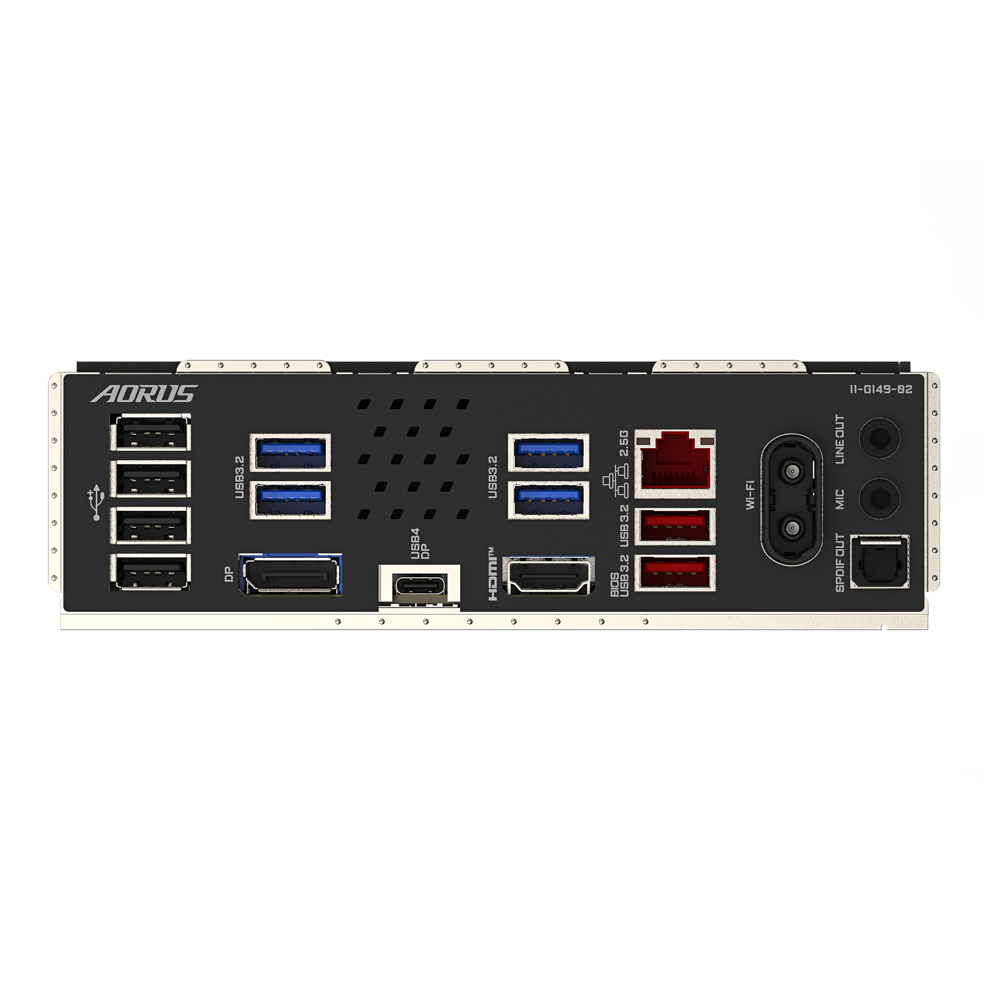 | Kết nối bảng phía sau | 4 x USB 2.0/1.1 ports 4 x USB 3.2 Gen 1 ports 1 x DisplayPort* 1 x USB4® USB Type-C® port (DisplayPort*) 1 x HDMI port* 1 x RJ-45 port 2 x USB 3.2 Gen 2 Type-A ports (red) 2 x antenna connectors (2T2R) 2 x audio jacks 1 x optical S/PDIF Out connector * Actual support may vary by CPU. |