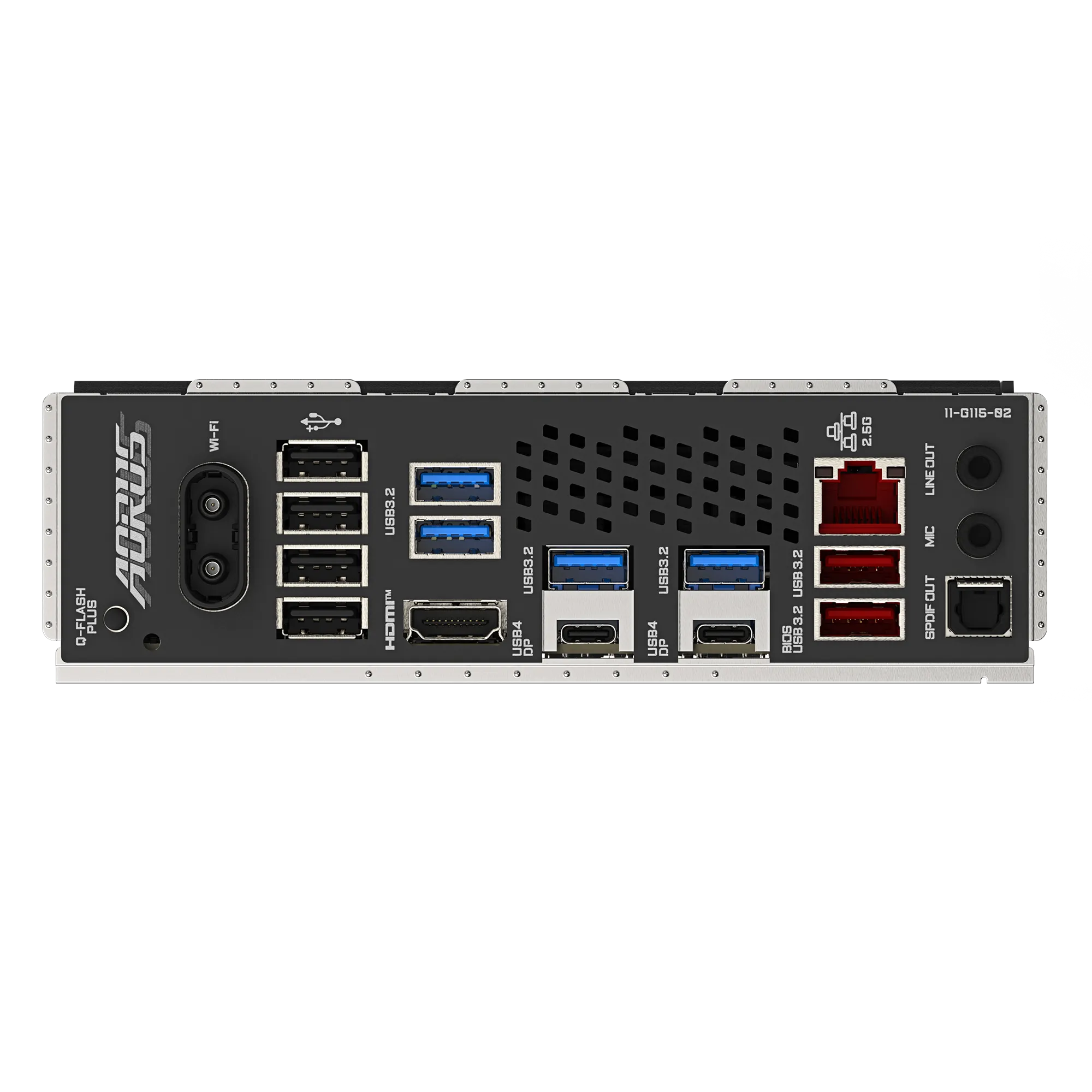 | Back Panel I/O Ports | 1 x Q-Flash Plus button 1 x HDMI port (Note) 2 x SMA antenna connectors (2T2R) 2 x USB4® USB Type-C® ports (DisplayPort (Note)) 2 x USB 3.2 Gen 2 Type-A ports (red) 4 x USB 3.2 Gen 1 ports 4 x USB 2.0/1.1 ports 1 x RJ-45 port 1 x optical S/PDIF Out connector 2 x audio jacks |