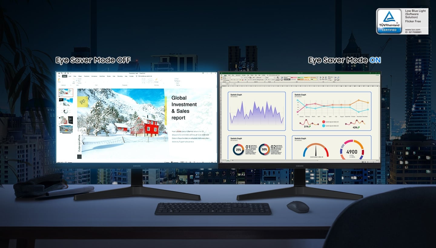 Ứng dụng công nghệ bảo vệ mắt đạt chứng nhận TUV, Màn hình Samsung LS27C310EAEXXV (27″/ IPS/ FullHD/ 75Hz) giảm thiểu được ánh sáng màu xanh, chống hiện tượng nhấp nháy thường gặp để giúp mắt thoải mái, thư giãn hơn.