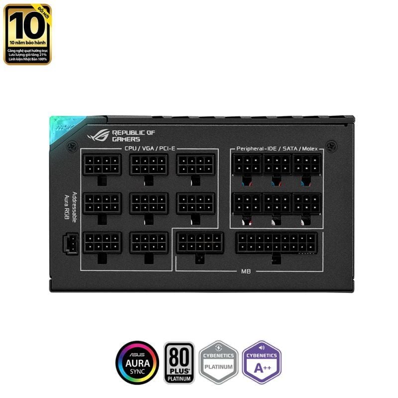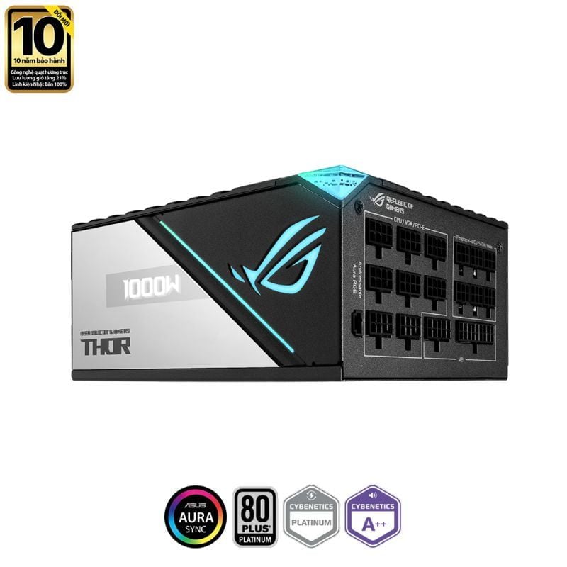 Bên trong và bên ngoài, PSU đầu tiên của chúng tôi được trang bị những ý tưởng sáng tạo. Bên ngoài, đèn Aura Sync RGB và màn hình thông tin OLED tích hợp hỗ trợ tùy chỉnh có các tùy chọn tùy biến và theo dõi cho giàn máy chơi game ROG của bạn. Bên dưới, các tụ điện chất lượng cao, một quạt hình cánh 135mm và tản nhiệt lớn giúp Nguồn Asus ROG THOR 1000P2 1000W 80Plus Platinum Fully-Modular đạt được chuẩn LAMBDA A++ và 80 PLUS® Platinum, biến nó thành một bộ nguồn lý tưởng cho các tín đồ PC có nhu cầu hiệu suất hoàn hảo.