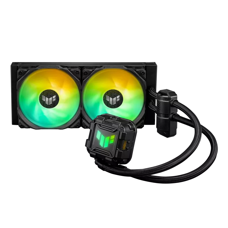 Bộ tản nhiệt nước CPU AIO TUF Gaming LC 240 ARGB với Aura Sync và hai quạt tản nhiệt TUF Gaming 120 mm ARGB