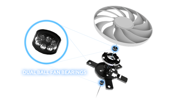- Công nghệ Axial-tech Fans với vòng bi kép, tăng lưu lượng gió nhưng giảm tiếng ồn.
