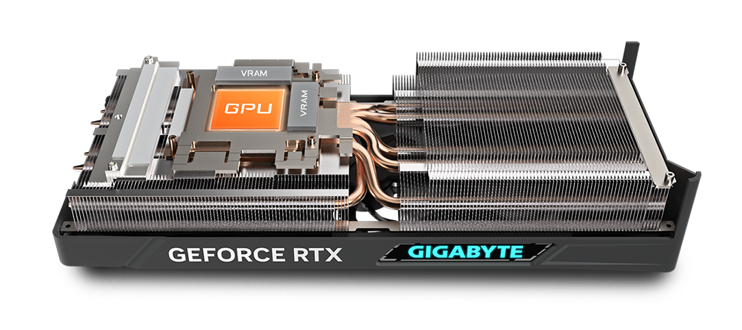 Đế tiếp xúc GPU của tản nhiệt thiết kế lớn, tiếp xúc trực tiếp với bề mặt GPU. Bên cạnh đó các ống đồng dẫn nhiệt sẽ truyền tải nhiệt lượng từ GPU và VRAM với một tốc độ siêu nhanh.