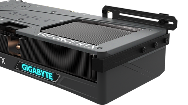 VGA Gigabyte GeForce RTX 4070 Ti Eagle OC 12GB (GV-N407TEAGLE OC-12G) Đi kèm một giá đỡ được thiết kế riêng cho từng dòng Vga. Điều này giúp tăng cường tuổi thọ của card cũng như tăng tính thẩm mỹ của hệ thống.