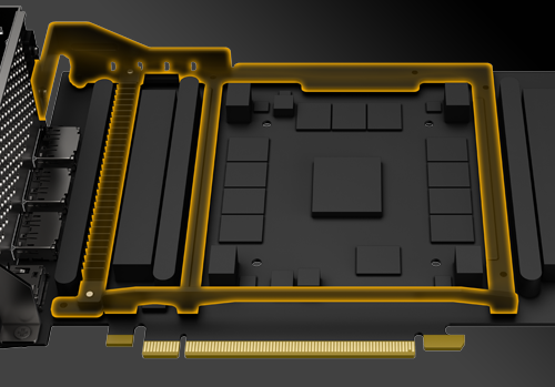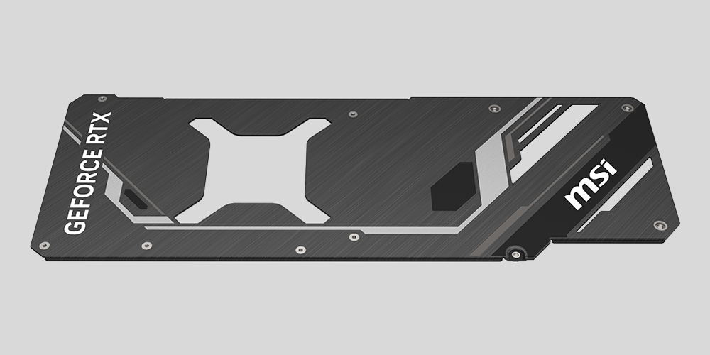 Một tấm thép chống cong được đúc chính xác nhất nhằm chống cong card cũng như bảo vệ và làm mát các linh kiện khác bên dưới nó.