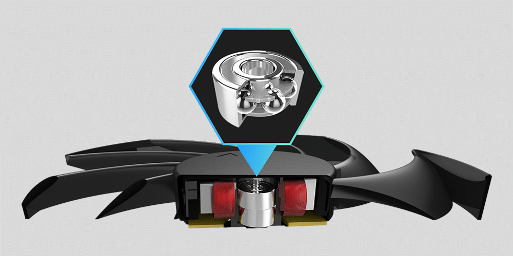 Quạt TORX FAN 4.0 sử dụng vòng bi kép – tăng cường tuổi thọ quạt đến tối đa.